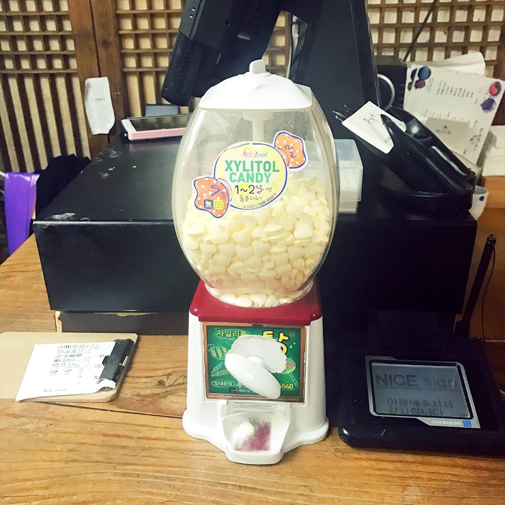 收银台很贴心地放着清新口气的心形糖,对于我们这群吃完小葱吃大葱的人来说真的很及时~