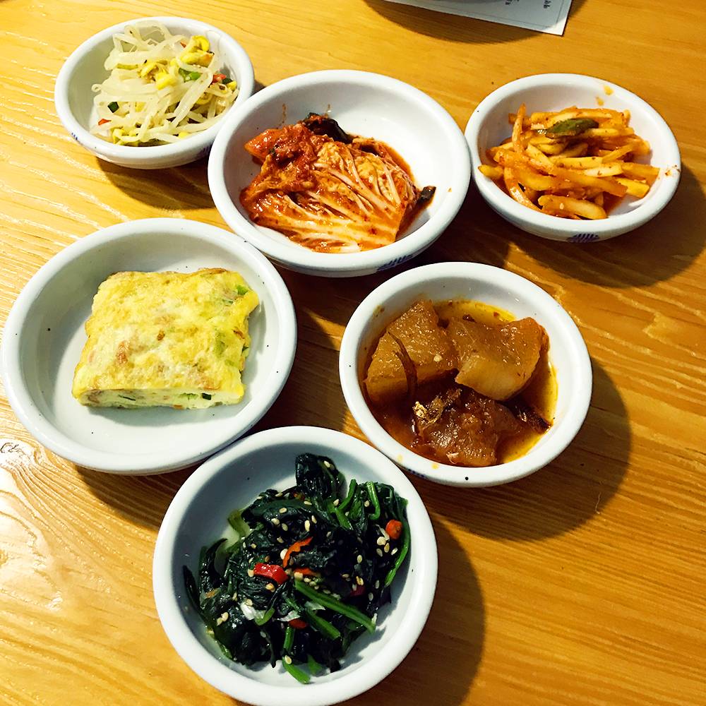 虽然韩国几乎每家餐厅都会给餐前小菜,但这家的样式最多,有泡菜、腌萝卜、豆芽、蛋卷等等,而且都可以免费续喔。