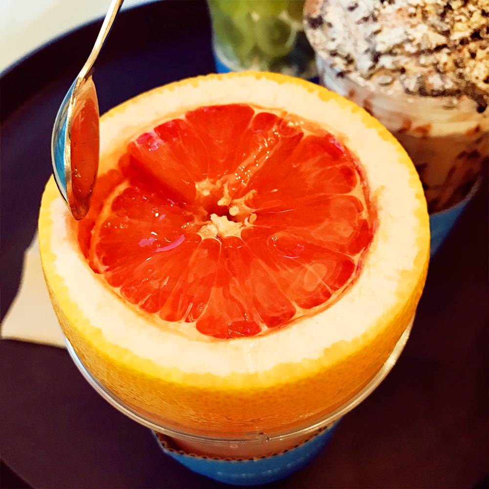 西柚杯上的果肉是切好的,可以用勺子直接戳进饮料里~西柚非常酸,不建议约会的情侣们点,怕你把持不住脸上的表情。