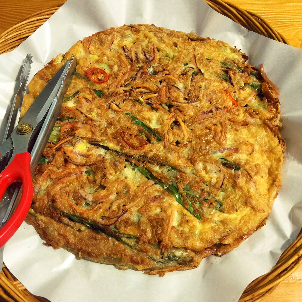 海鲜饼吃起来也很厚实,里面的大葱让口感变得稍微脆了些。