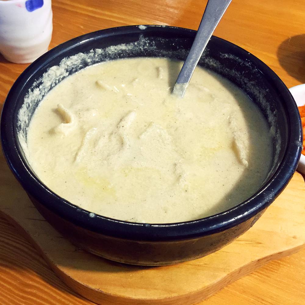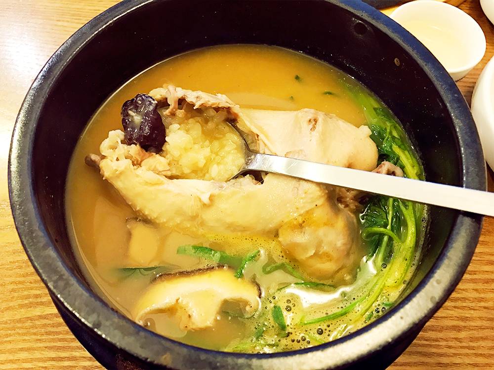 这次店里没有东北大叔,但有个中文很好的阿姨,我们说的荤段子她全能听懂。我们点了香辣参鸡汤和粥参鸡汤,据吃过的男助理说,比别家的更浓稠,鸡也炖得特别酥软,表面看是完整的,其实用筷子轻轻一扒就开了~