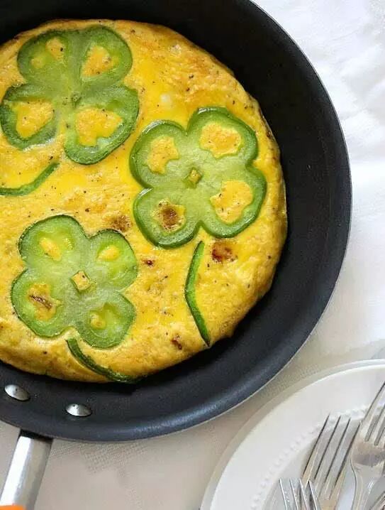3.热锅入油,七分热,把青椒丁炒香,放入调好的汁勾芡,浇在蛋上面;