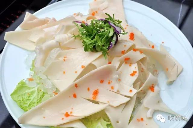 洒了鱼子的黄喉似乎赋予了黄喉一些鲜艳明亮的活力,煮好之后口感爽脆,配合麻辣的酱料,比起香油又是另一番享受。