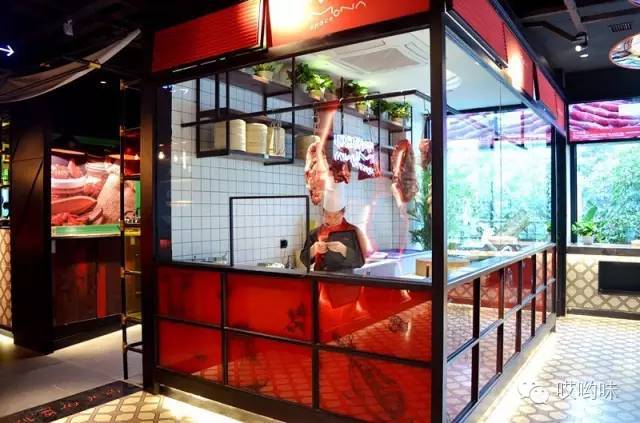 进门便能看见通透的鲜切明档从屠场经过这里到你的餐桌,不超过4小时的新鲜链接。