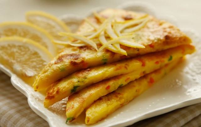 煎好的鸡蛋饼可以单吃,这时的葱香、蛋香萦绕口中,如果再配上些小菜,来碗米粥,实为一道营养美味的中式小餐。