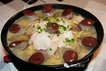 酸菜氽白肉是一道以酸菜、五花肉等为原料,精心煮制而成的吉林传统名菜,白肉肥而不腻,酸菜鲜香嫩脆,看似简单的一道传统汤菜,做法上的讲究却丝毫马虎不得。看着袅袅的热气,闻着酸酸的味道,足以令人沉醉其中。做到汤浓肉烂,菜酸入味才是此菜的精髓所在。
