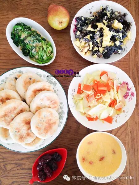 配菜:青蒜蓉佛手瓜胡萝卜,鸡蛋炒木耳,麻酱菠菜