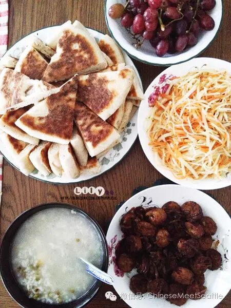 主食:小米百合南瓜粥,火烧(香芋馅/花生芝麻红糖馅)
