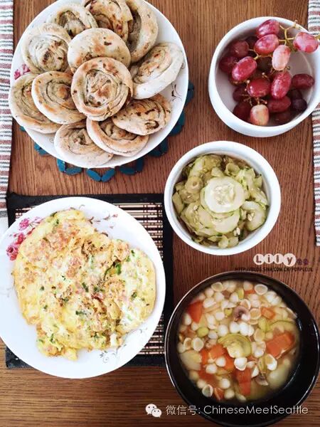 配菜:火腿葱花烘蛋,凉拌黄瓜