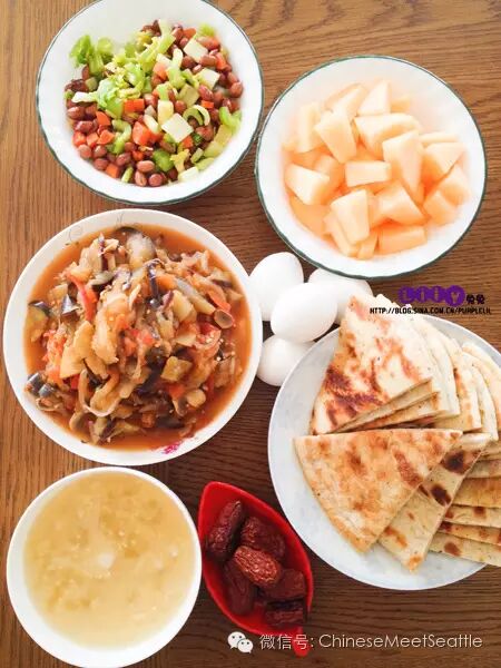 配菜:番茄烩茄子,凉拌芹菜花生柿子椒,煮鸡蛋
