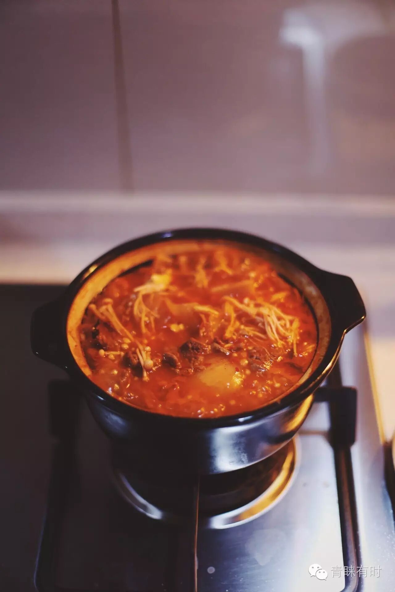 这次煮的时候还自助加了金针菇,大家可以根据爱好自己加别的东西煮。