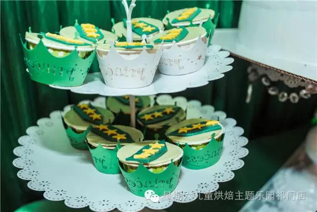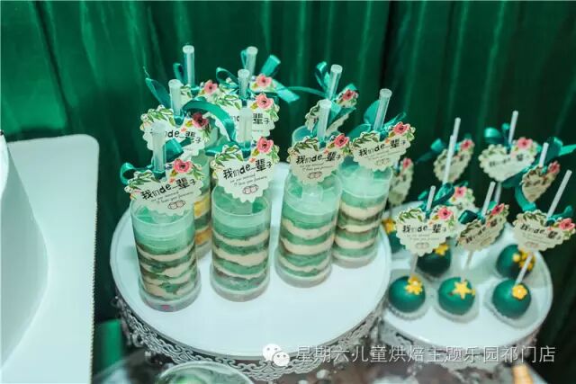 这次给大家分享一个主题定制的墨绿色系的甜品台。新娘是为温柔美丽而且很心细浪漫的军嫂,所以她来找我们,希望我们能定制一个军旅主题的甜品台。于是就有了下面这些美美的甜品台咯!