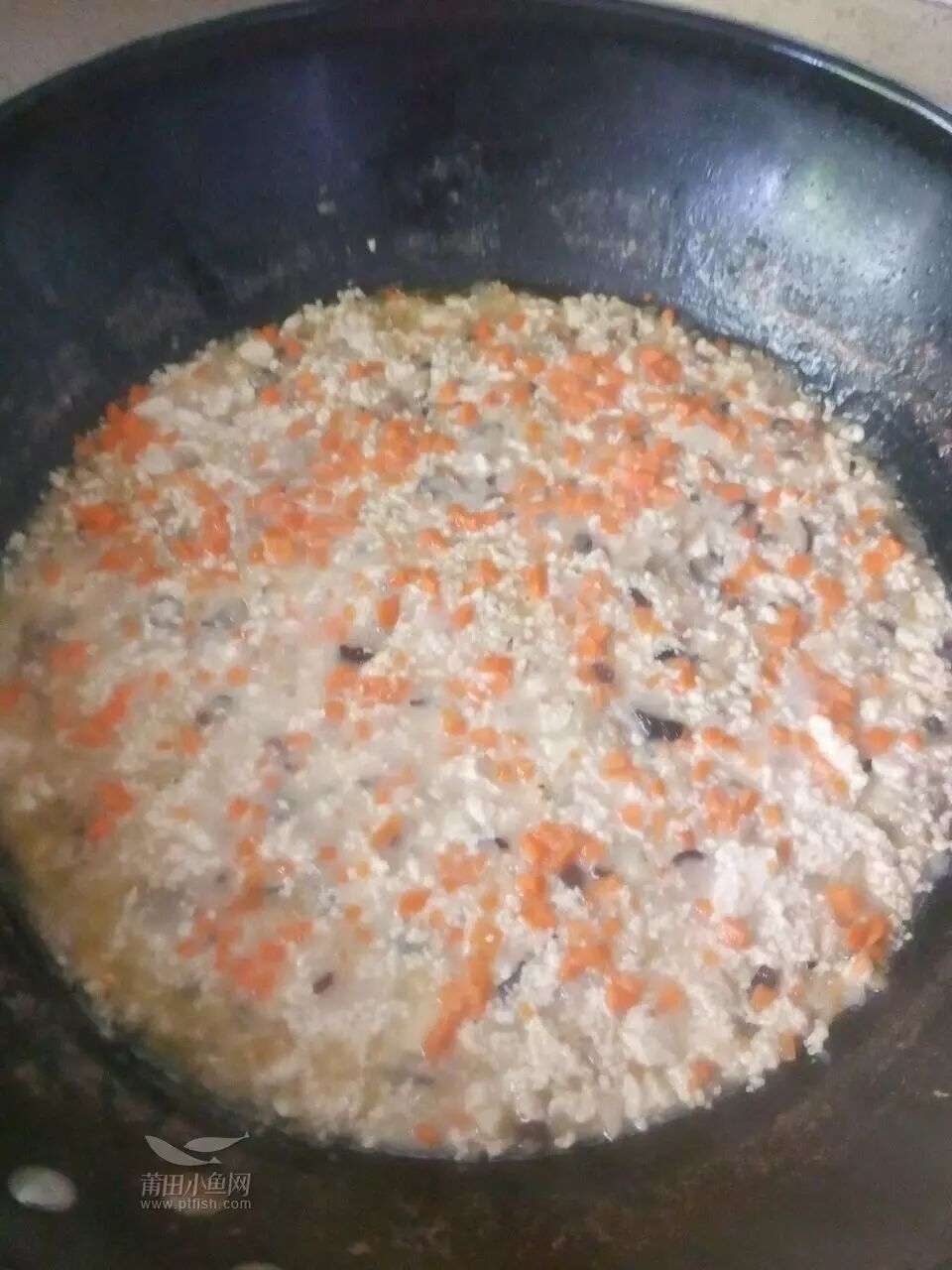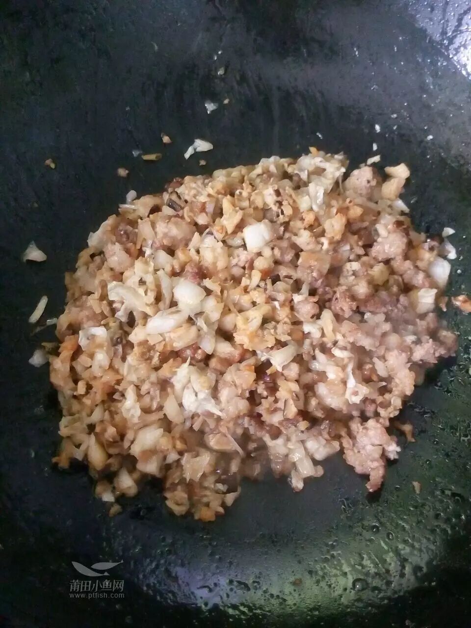 锅里放油,下五花肉煸油,姜洋葱蒜爆香,再倒入香菇、虾仁干、蛏干、干贝、山东白、加一点老酒煸炒,然后倒入骨头汤,立马加入盐、生抽、老抽,盖上锅盖。(干货有咸,盐少放点)。