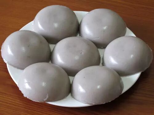 碗砣是陕北有名特色小吃,深受当地人民喜爱。碗砣由石勒发明于西晋初年,可冷食或者热食。用荞麦仁加水渗透碾压,渐渐加水,掺成糊状,过滤去渣,稠度以挂勺为宜。而后将粉糊盛碗入笼,旺火蒸熟后晾凉,从碗中脱出成,故名碗砣。