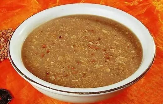 壶壶油茶是陕西省汉族传统小吃之一。面粉、调和面加凉水搅拌成稠糊糊,加进杏仁、芝麻、酱油、盐、胡椒粉、味精等,颜色变成酱黄色就熟了。