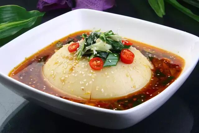 酸汤水饺是一种陕西地区古老的汉族传统小吃,具有1000多年的历史。酸汤水饺是把羊肉水饺放在特制的酸汤内食用。