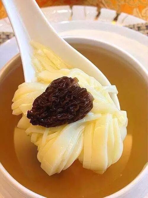 10、浓汤烧开,鸡精、盐、糖调味,倒入盛器内,待滚起即可食用。