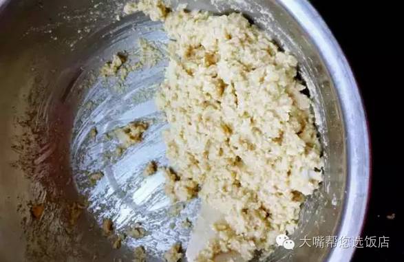 ⑤ 盆里放入花菜茸,鸡蛋,燕麦,加入半小勺盐,黑胡椒粉研磨十下(黑胡椒粉研磨十下)拌成很厚的糊。这时烤箱预热。