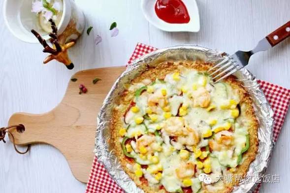 ⑦ 抹层番茄酱或者披萨酱,多少随自己,摆上蔬菜虾仁,撒上奶酪,接着入烤箱200度5分钟,奶酪融化即可,如果想要烤出焦斑那就多几分钟。可在成品上撒黑胡椒粉或者各式香草,随意随意~