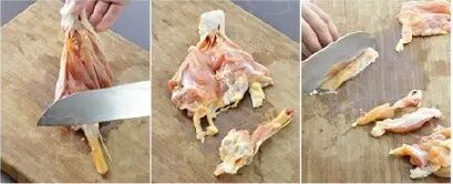 3.用力将鸡骨敲断。