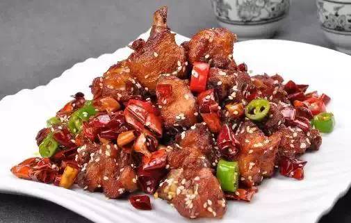 3,重新起锅,倒入少量的植物油爆香葱姜蒜,然后加入花椒麻椒和辣椒翻炒,炒出香味后放入事先炸好的鸡肉继续翻炒,注意不要把辣椒炒糊了,临出锅的时候洒上一点糖,喜欢的话也可以洒上一些熟芝麻什么的,就大功告成了!