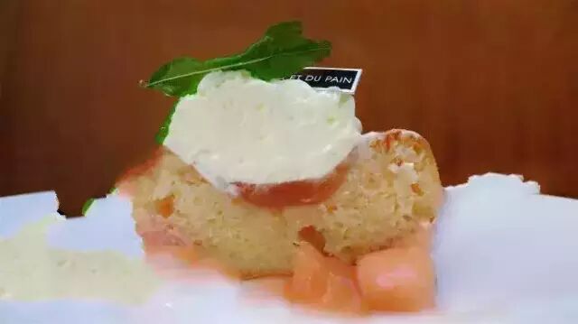 松脆的饼干,杏仁挞,加上西西里橙子,普罗旺斯-圣雷米的甜瓜酱以及闪闪发光的白色慕斯。小脆饼与橙子结合的酸度恰到好处地与甜瓜酱的甜味。