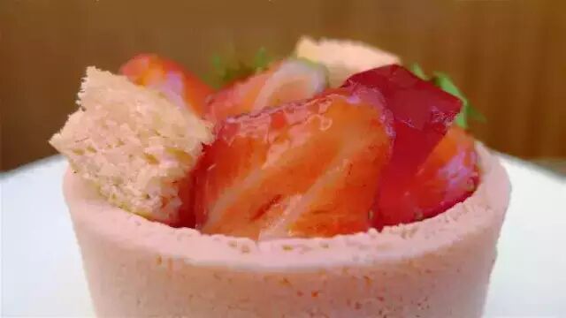 品尝像草莓冰淇淋味道的慕斯,就算不喜欢草莓味道的人,也能喜欢上这款蛋糕吧。