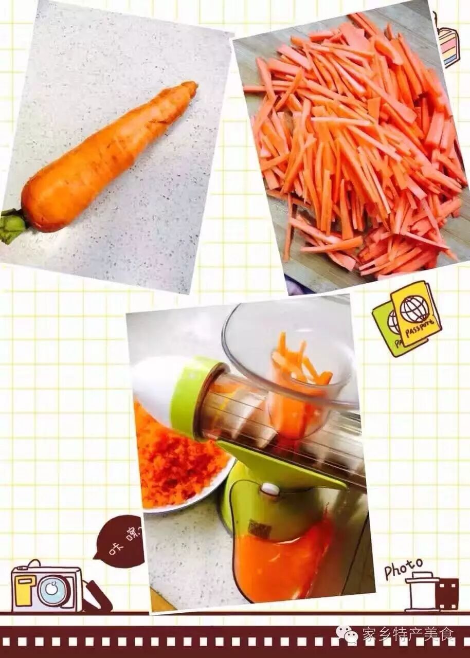 先用果语榨胡萝卜汁,再用汁和面,加了一个鸡蛋,