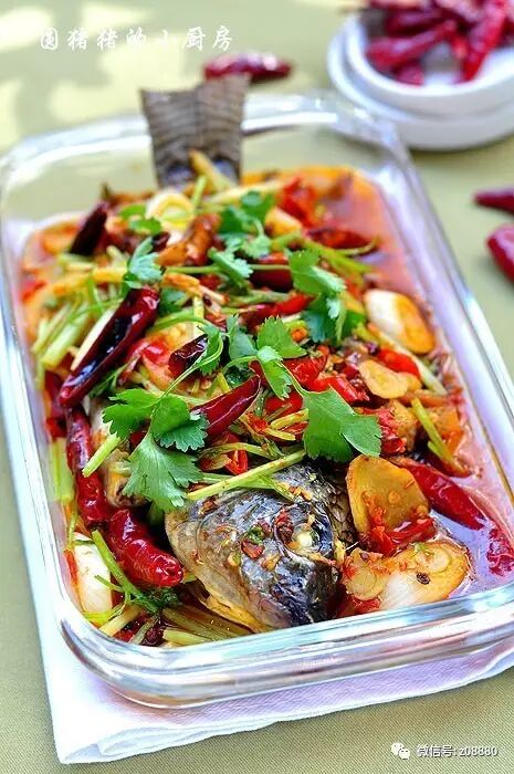 听说了这个重庆麻辣烤鱼好久了,一直没有尝试过.今天试做了一回,味道果然不一般哦!鱼的表皮是干脆的,鱼肉是鲜嫩的,沾着汤汁吃很鲜美.