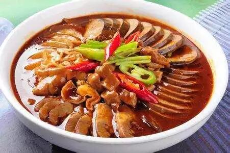 A料(葱段、姜片各20克,料酒50克),酱油10克,老干妈辣酱30克,郫县豆瓣酱20克,小料(葱段、姜片、干辣椒各5克,八角、桂皮各3克),面粉、白醋各100克,二汤800克,色拉油50克,红油、藤椒油各15克,盐、鸡粉各5克。