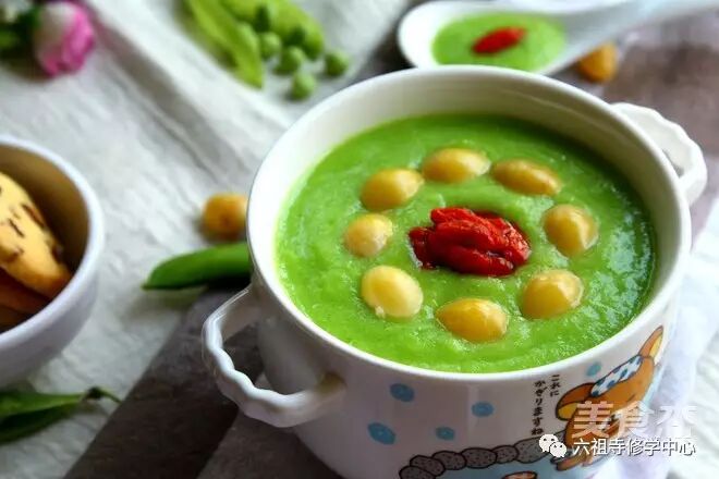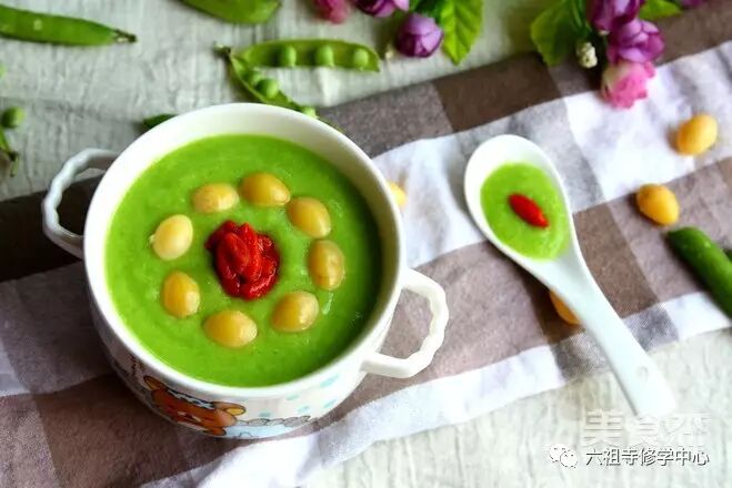 主料:鲜豌豆仁180克、银耳1朵、白果30克
