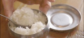 ② 準備一個鍋,加水放少量鹽,放入蒸粗麥粉,蓋上蓋,五分鐘。