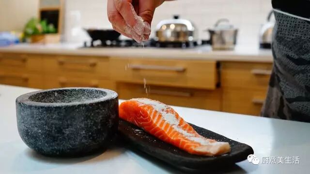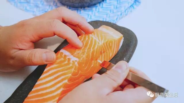 这个配方是做一块的量,大概300克的带皮三文鱼