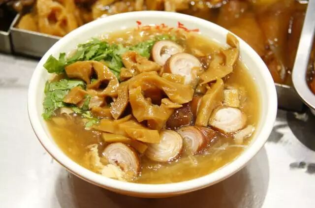 滑嫩香甜的豆花,浇入劲道的粉丝,外加碎萝卜干,虾皮还有酱油等各种佐料,有的还加上香菜,最后再配上卤肥肠等一些卤料,口感爽滑,百吃不腻。