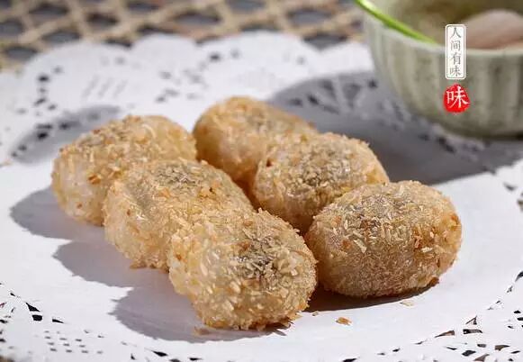 麻糍外皮Q弹,糯而不粘,薄而不裂,蘸着细腻的花生粉和黑芝麻。甜而不腻的糖粉搭配上酥脆爽口的炸扁食皮,Q弹外皮香酥内馅,让人一吃就爱上的漳州甜食!