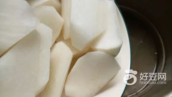 罗卜洗净去皮切成滚刀块,姜洗净切稍厚的片备用