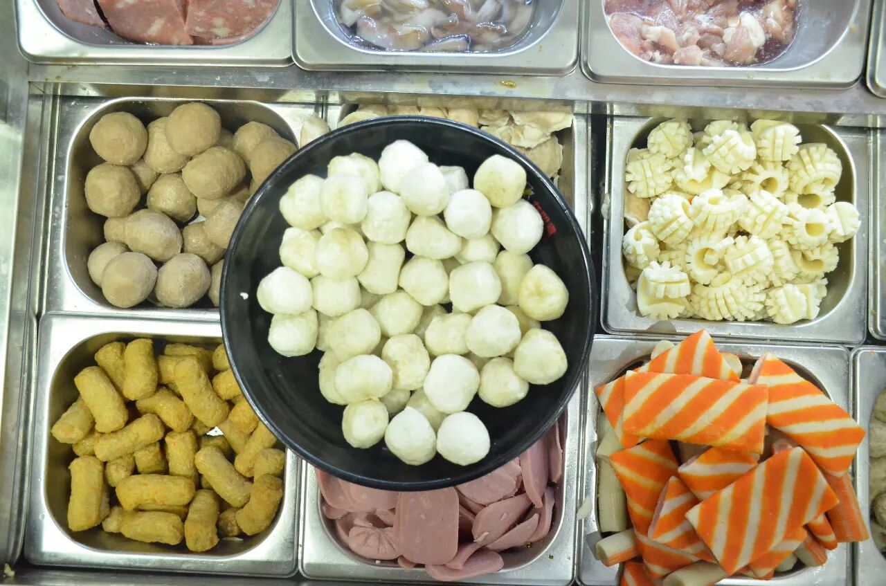 午餐肉、培根、鱿鱼卷、鸡肉、牛肉都很全。