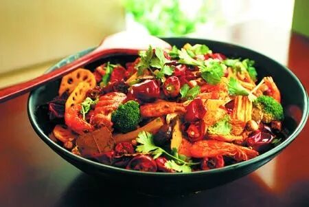 麻辣香锅来源于重庆缙云山土家风味。当地老百姓喜欢将麻、辣、香混为一锅,加上一些食材,就成了当地的有名的家常菜。