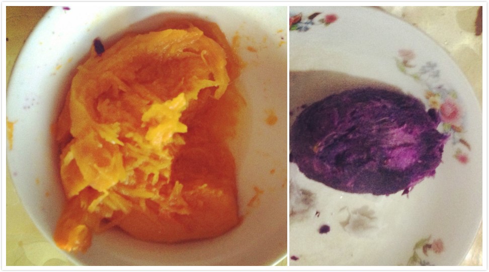 紫薯,南瓜蒸熟,蒸熟捣鼓成泥巴