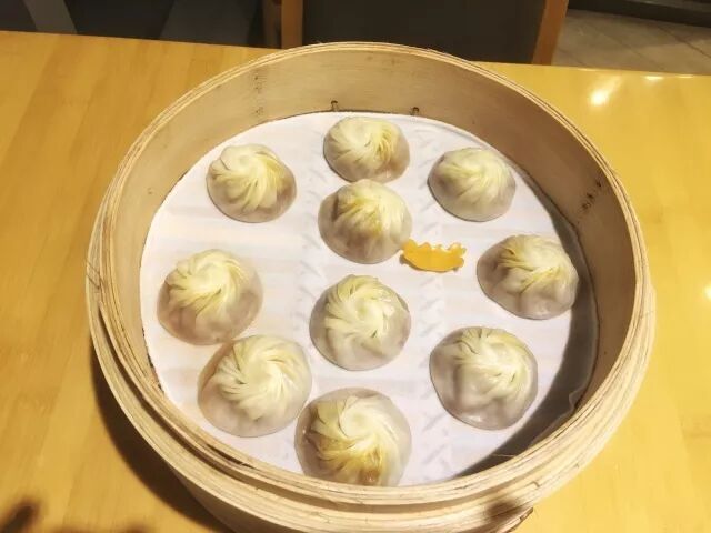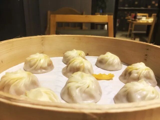 蘸酱之后建议一口吞,不会太烫温度适宜,蟹粉和猪肉加汤汁还有水晶皮混在一起的口感不要太美味,感觉自己要上天了。这可能是全中国最好吃的灌汤包吧。