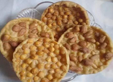 客家地区普遍有炸花生饼、黄豆饼的风俗,外观一般为金黄色圆形薄片,中间半包有花生米、黄豆等,香酥可口。韶关地区客家把这种饼叫做铜勺饼、豆壳儿。