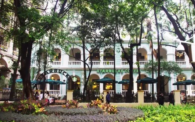 此外,沙面路边众多精致的咖啡馆,足够你度过一个闲暇的下午。值得一说的是岛上的【星巴克】,据说是广州最美的一家。绿色的二层洋式建筑,与扑克女王头像契合得完美。