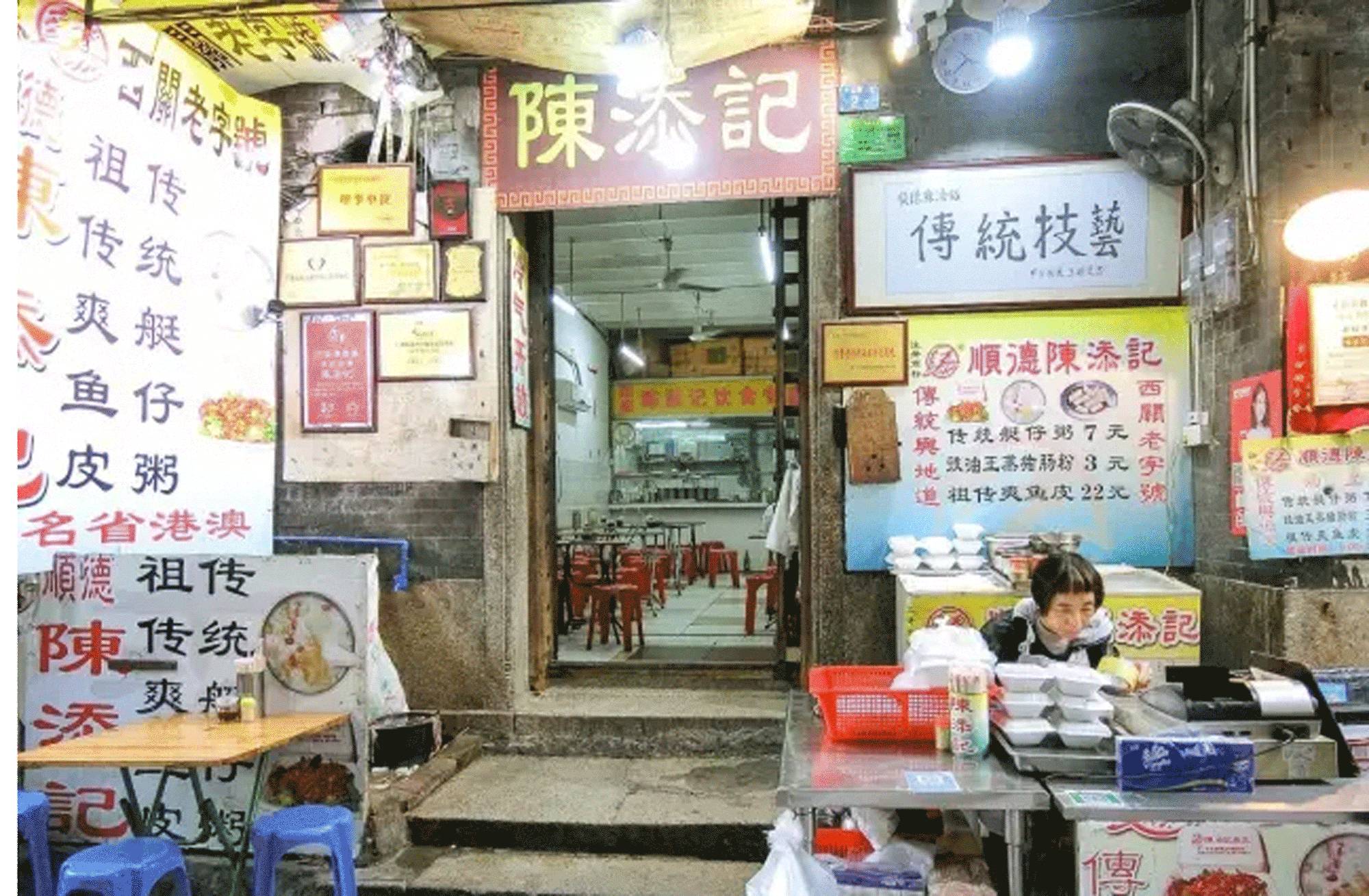 陈添记的鱼皮和艇仔粥一直是当地人的心头好,至今保留着最传统的做法和食材。鱼皮用新鲜的鲮鱼皮,拌上花生、姜葱、酱油捞起的鱼皮非常入味。