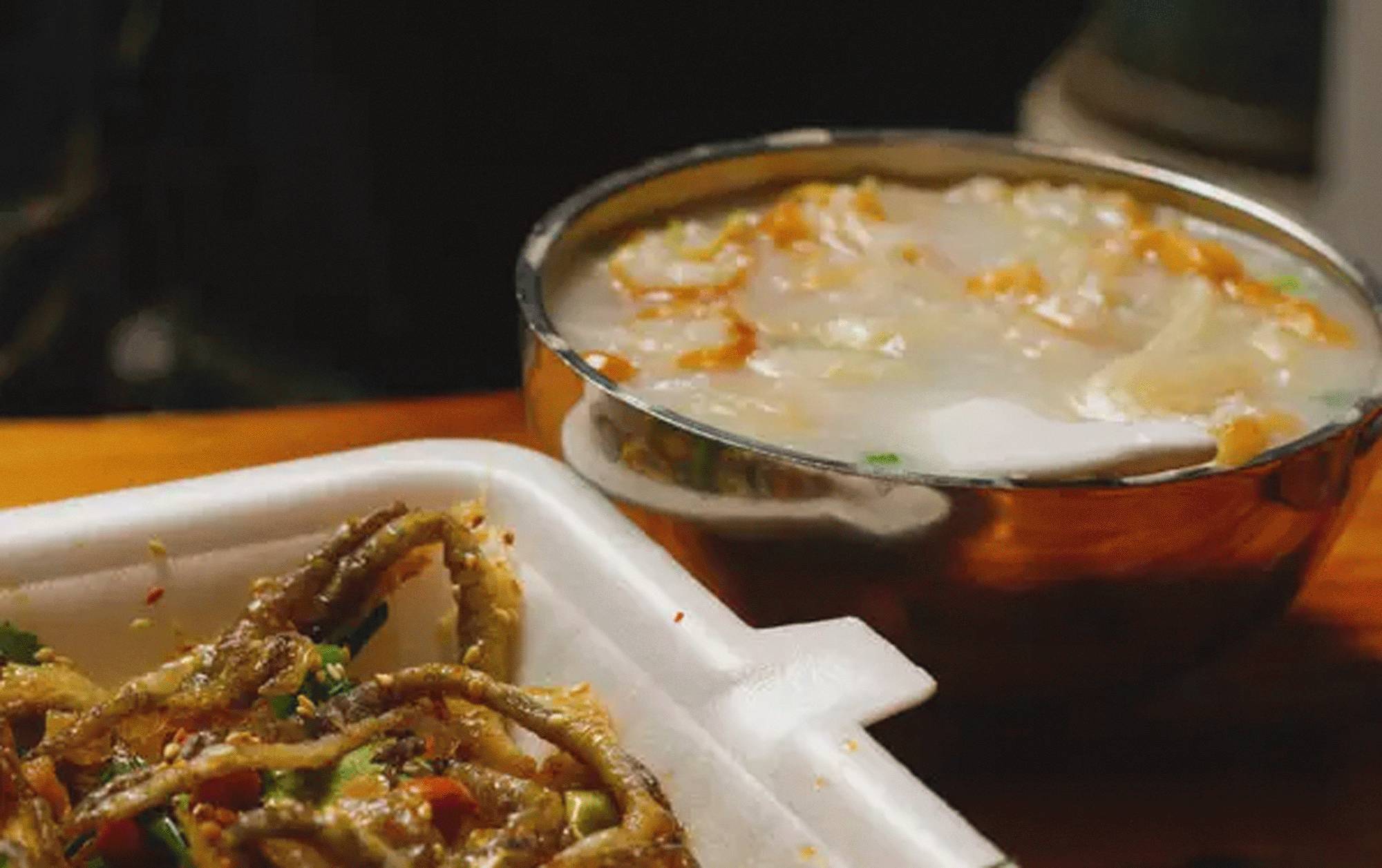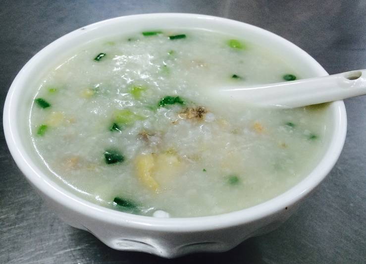 食粥也是广州人的一大爱好,大街小巷都有各式各样的粥店。精挑细选的白米煮好一大锅备用,待到有人点单时,舀出一碗慢慢炖开,加进鸡肉、牛肉等配料。端上来,还时不时冒点气泡,趁热吃刚好。