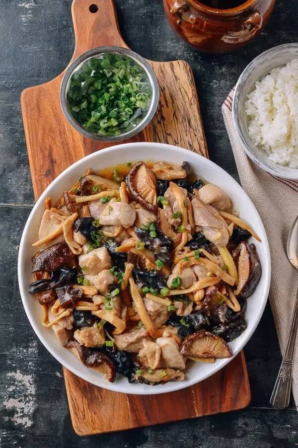 干木耳40g;金针菜50克;香菇10个,泡发;