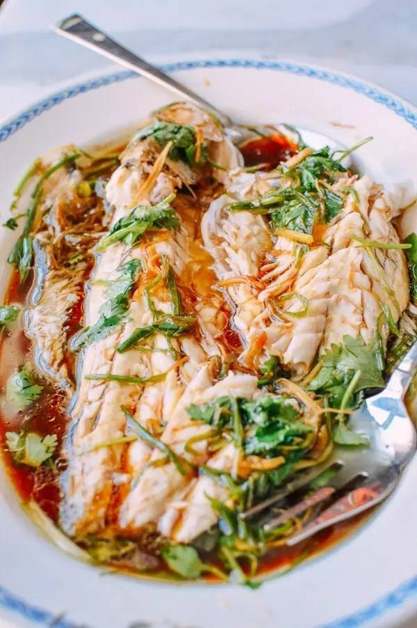 6、美味鲜甜的清蒸鲈鱼就做好了。可切开中间部分,将鱼骨剔除再食用。