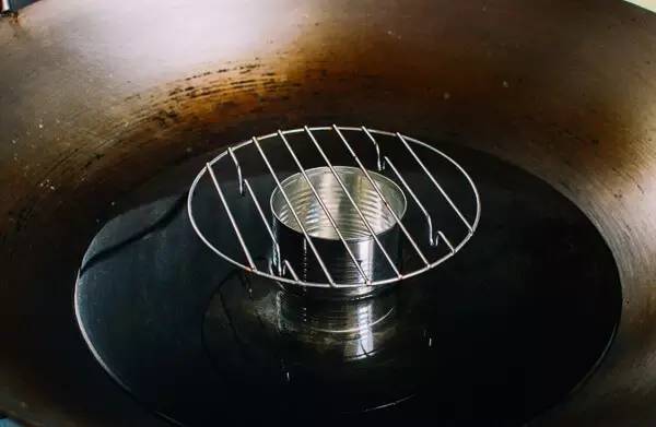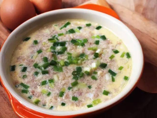 5、搅打好后,倒入盛盘中。锅中加水,将鸡蛋羹放在蒸架的中央,蒸6分钟。