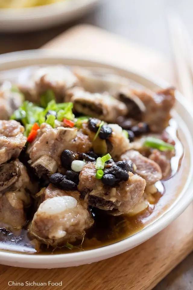 4、将玉米水倒在排骨上,撒上豆豉和大蒜。蒸锅中的水烧开后,放在蒸架上蒸40分钟左右。
