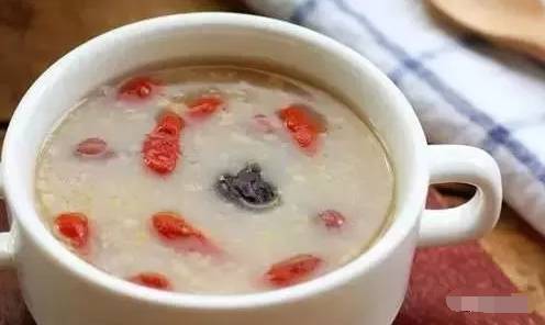 枸杞养肝、滋肾、润肺。在粥中加入少量枸杞,不仅增色增香,而且食疗效果更好。