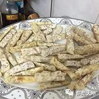 2. 切成薄片。最好厚度均匀,这样子烘烤的时间大体相近。